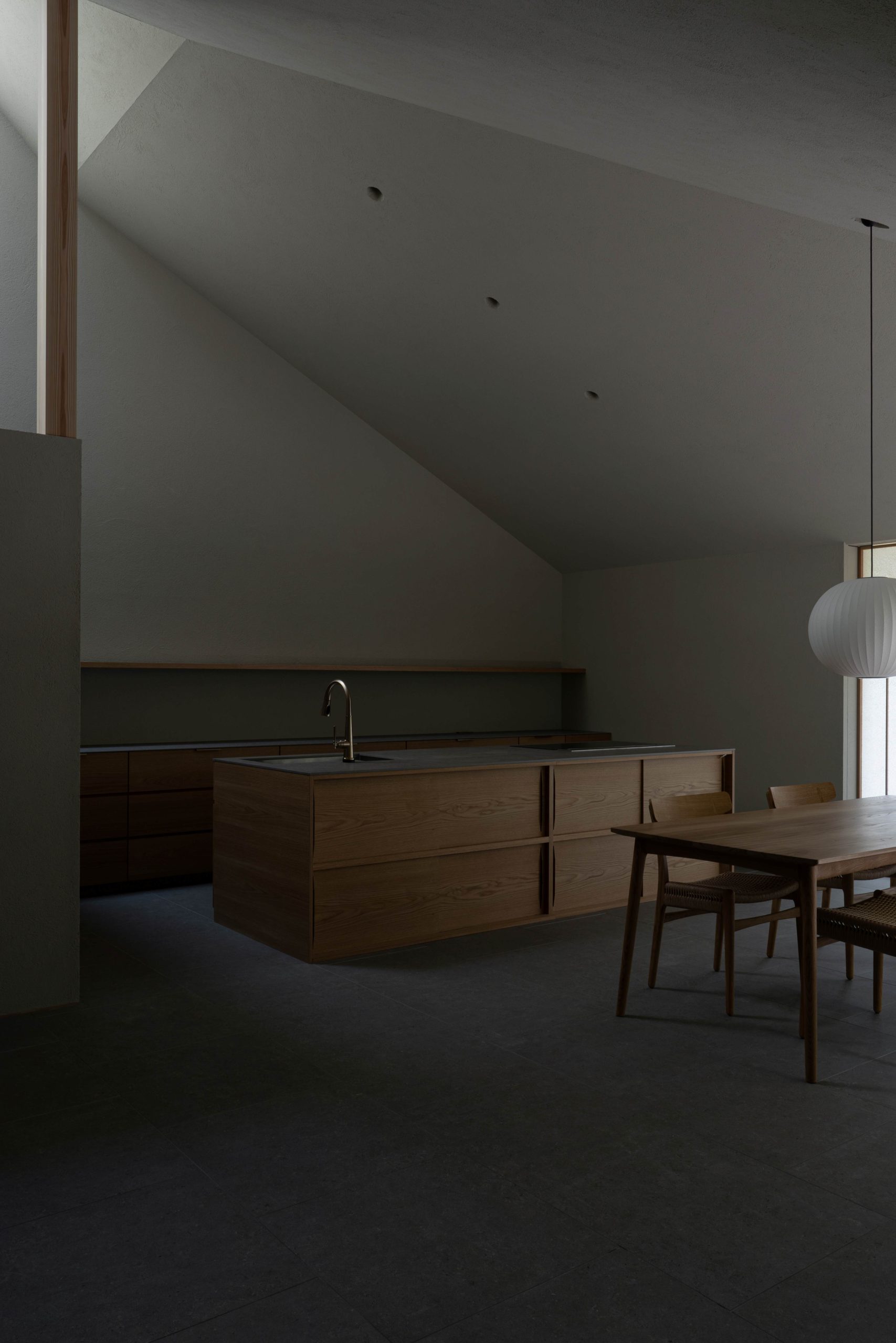 たとえば宇宙を思い浮かべると、星々は無数に散らばっているように見えながら、実際には重力や軌道、周期といった法則に従って存在しています。そこには、法則の中で保たれた静かな均衡があります。建築もまた、語りすぎることなく、正しい位置に、正しい関係性で、ただ「在る」状態が最も自然なのだと考えています。通奏低音のような秩序を内包し、具現化された空間は、現実世界における日常という行為を、深いところで、静かに支え続けていく。そうした空間を、つくり続けたいと考えています。